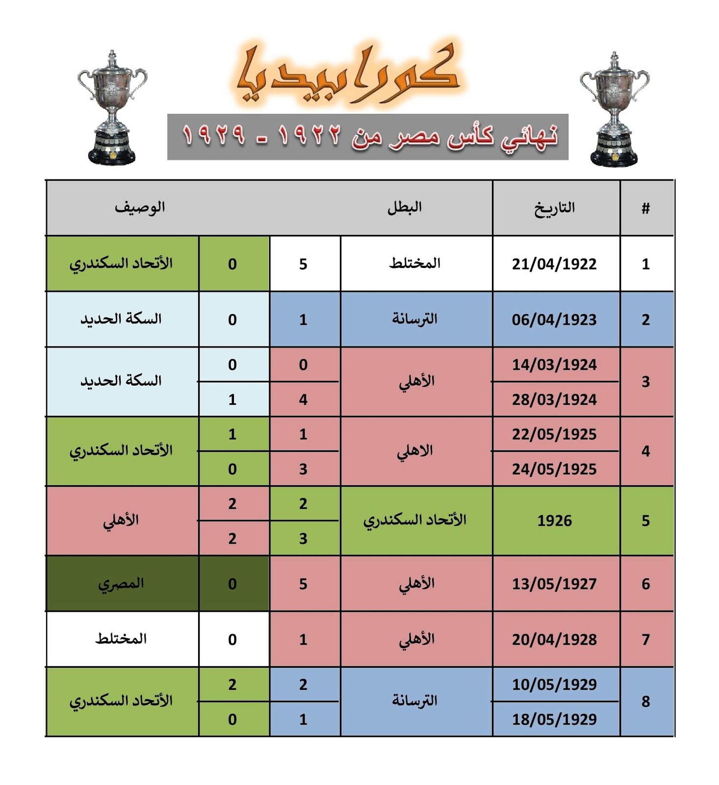 ⇐ السجل تاريخ كأس مصر .. عقد العشرينيات