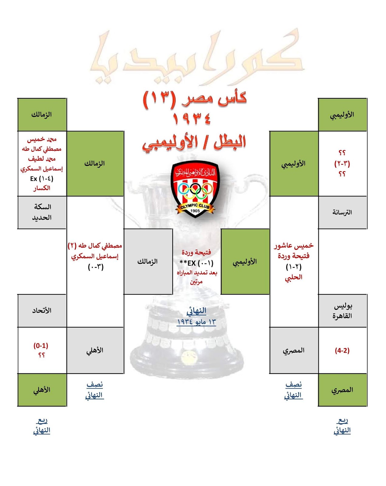 مشوار فريق الأوليمبي .. بطل كأس مصر 1934
